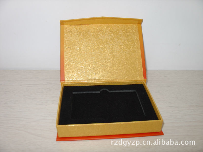 产品材质:工业纸板/书卷式带三角纸盒/数码印刷/金黄小玫瑰纸/黑色EN面裱黑色绒布