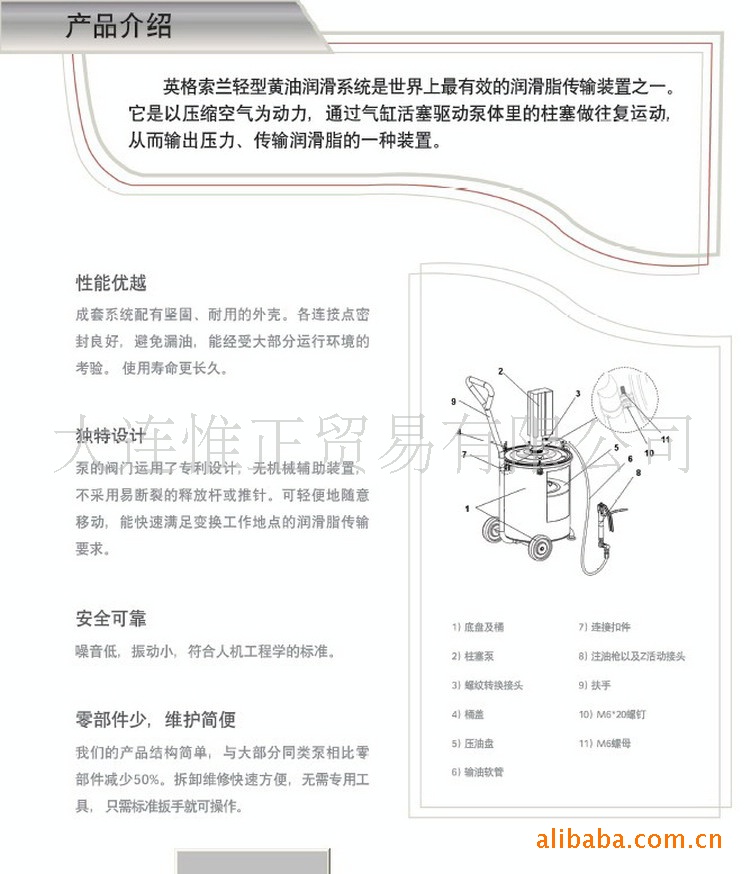 美国英格索兰ARO轻型黄油润滑系统是世界上最有效的润滑脂传输装置之一。它是以压缩空气为动力,过气缸活塞驱动泵体里的柱塞做往复运动,从而输出压力,传输润滑脂的一种装置。