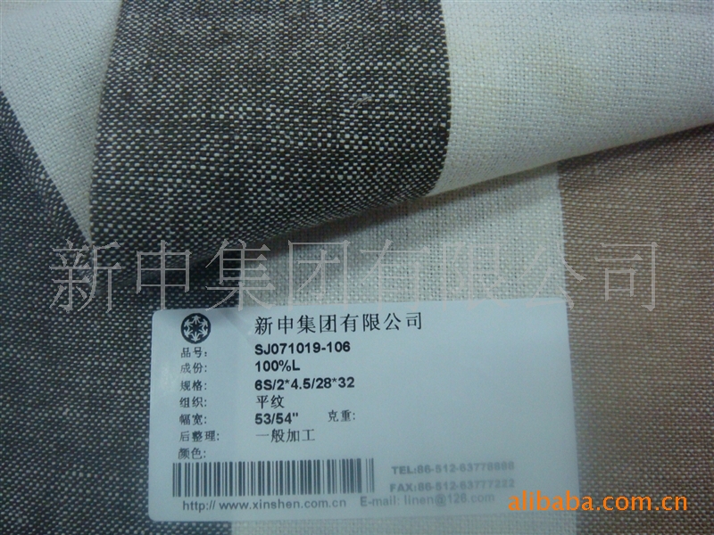 新申集团有限公司作为国内亚麻面料领跑者之一,多年来一直致力于亚麻的研究及生产,积累了丰富的经验。采用法国、比利时进口亚麻原料,面料花型独特新颖,长期以来与国际著名品牌建立了优良的合作关系。外借国际先进设计和管理理念,严格内部管理体制。创造具有自主知识产权的亚麻品牌.2005年引入意大利先进的设计新理念推出新品亚麻系列面料,从纺织面料的设计、织造、染色、后整理进行全程技术指导。使新申亚麻面料的风格和品质具有了国际先进水平,可谓是实现了进口面料的本土化生产。 让世界亚麻更精彩是新申人的追求。