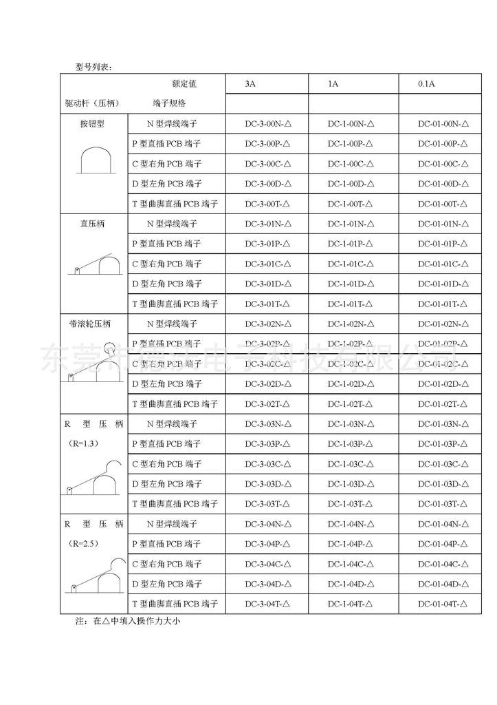 型号 额定值 | DC-3 | DC-1 | DC-01 |