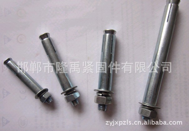 使用时,须先用冲击电钻(锤)在固定体上钻出相应尺寸的孔,再把螺栓、胀管装入孔中,旋紧螺母即可使螺栓、胀管、安装件与固定体之间胀紧成为一体。拧紧以后会膨胀的,螺栓尾部有一个大头,螺栓外面套一个比螺栓直径稍大的圆管子,尾部那部分有几道开口,当螺栓拧紧以后,大头的尾部就被带到开口的管子里面,把管子冲大,达到膨胀的目的,进而把螺栓固定在地面或墙壁上,达到生根的目的。