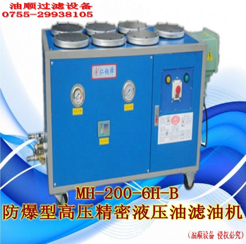 液压油精密滤油机以精密的滤油器数个并联配管,再配备泵浦马达,真空表,压力表,及吸入过滤网,电磁开关,铁架等组成,自成一个过滤系统,且具备轮子方便移动使用。适合作集中过滤或同一油类的各式机械轮流过滤,过滤过程简单,效果好(一次可达NAS6级)经济实惠,范围广。