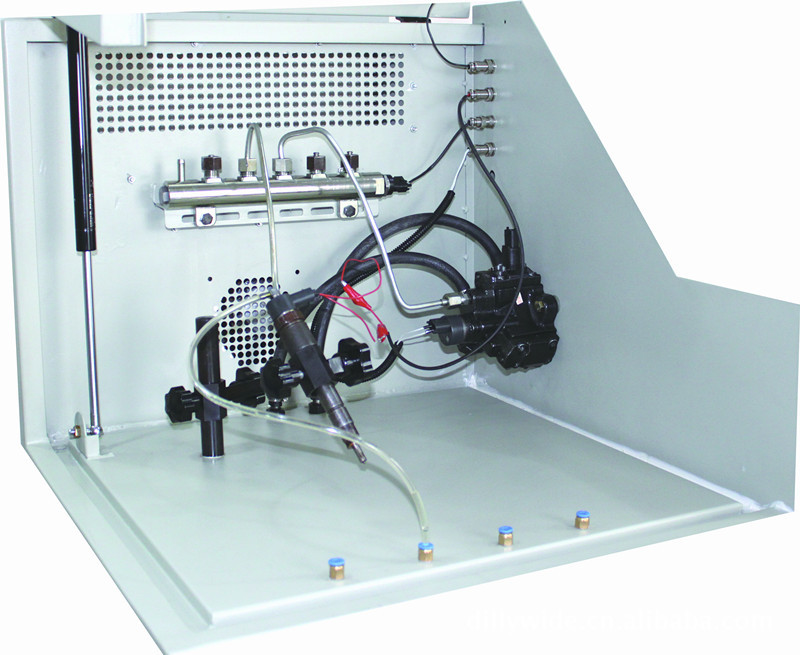 设备采用了工业计算机控制、windows操作系统、大屏幕液晶显示、简洁友好的操作界面设计,利用BOSCH高压共轨喷油泵产生0-160MPa的轨道压力,测试过程中可观测喷油器的雾化状况,测量喷油器的开启压力、喷油量及回油量。检测方法直观、操作简便。