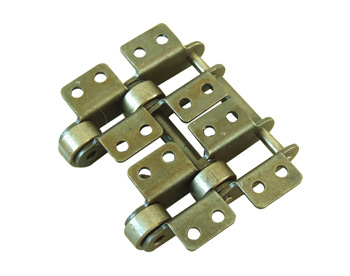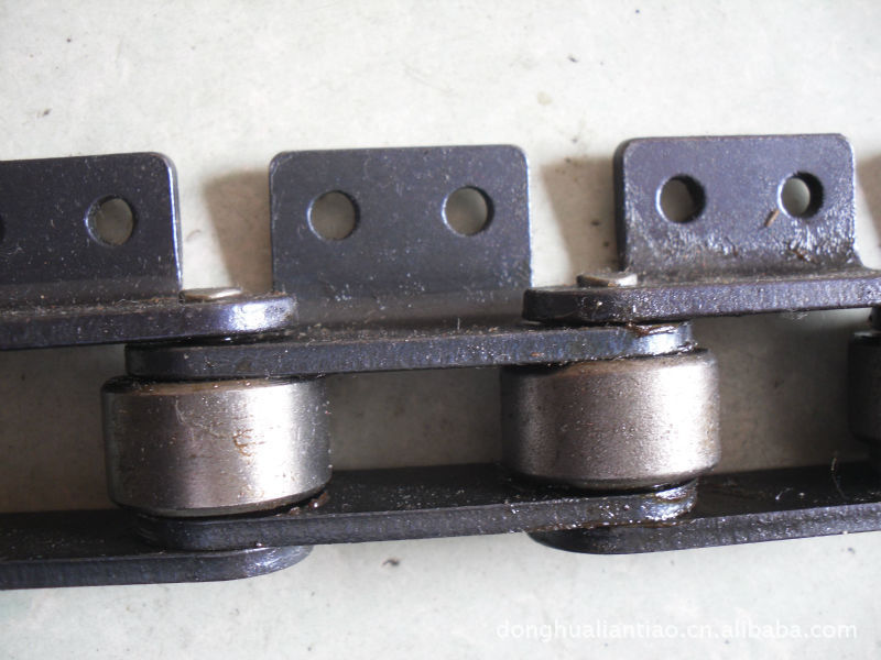 链条滚子有小滚子(S型)、大滚子(P型)、凸边滚子(F型)、空心销轴结构、轴承滚子。链条附件形式有:单侧弯板、双侧弯板、侧滚轮/尼龙滚轮、加长销等。