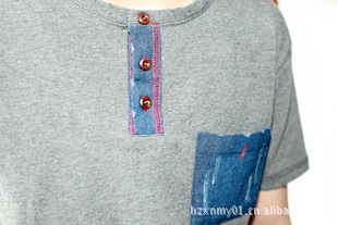 供应 批发三粒扣半开襟修身T恤 韩版T恤 短袖T恤 可定做