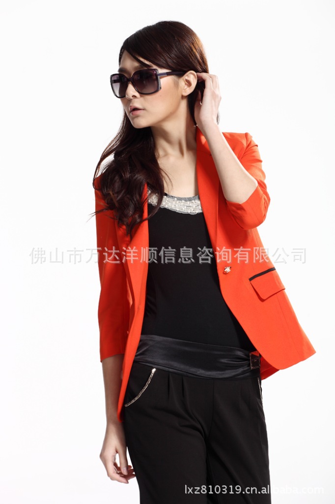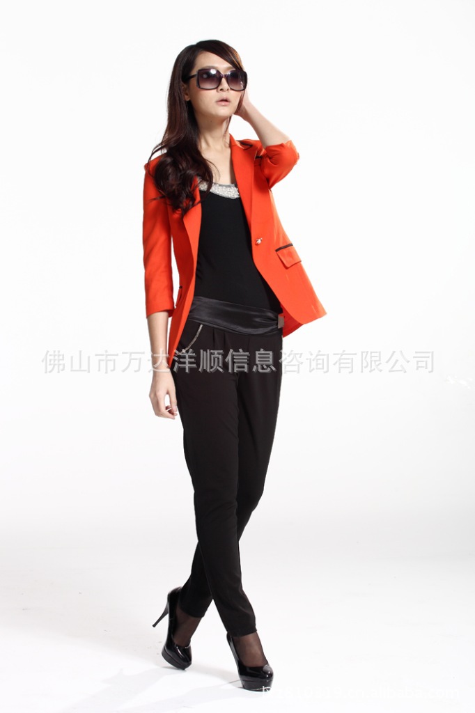 本产品的销售只包括高贵典雅,品质一流的橙色西装和黑色的背心,不包括下衣-西裤和模特身上的任何配饰。