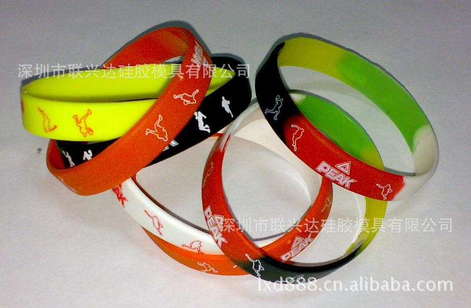 硅胶手环/织带:凹字、凸字、印刷、夜光、荧光、凹入填色、滴胶、感光.