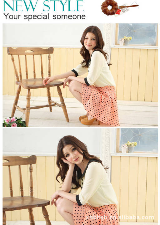 新款2012夏装时尚拼接布连身洋装上衣连身裙批发