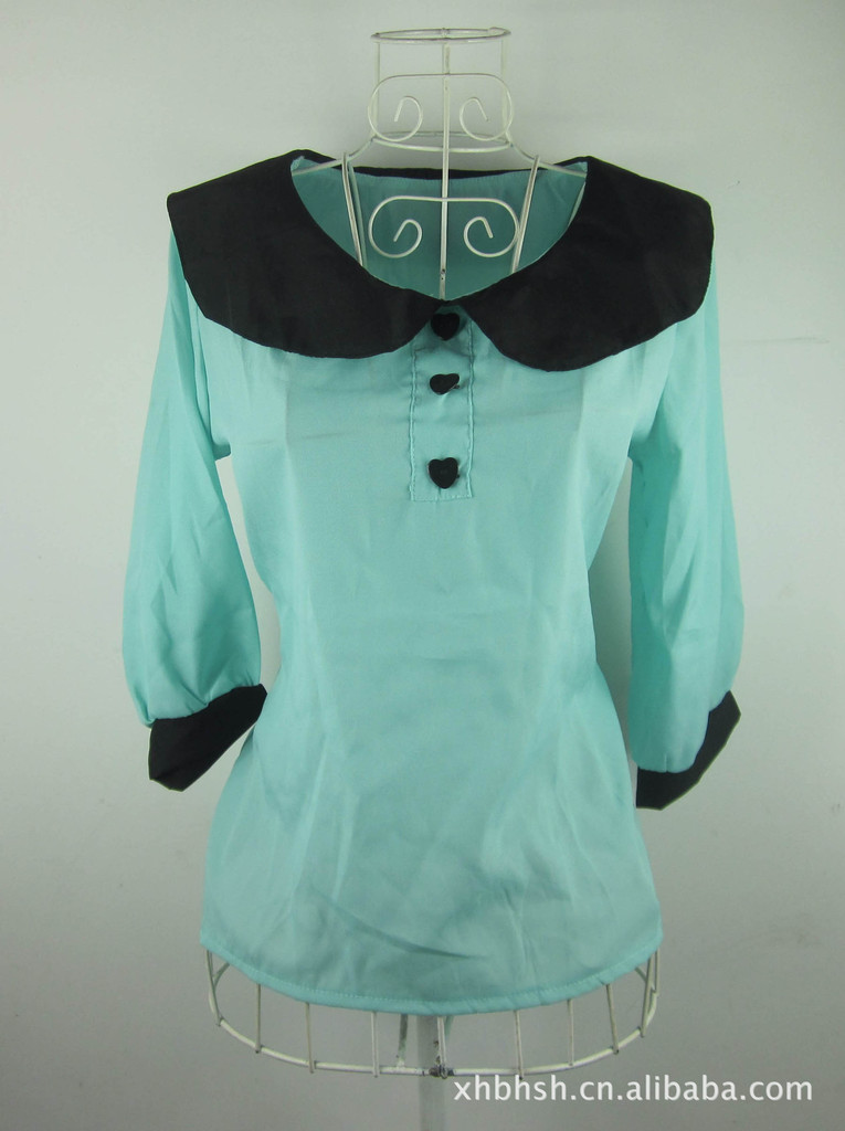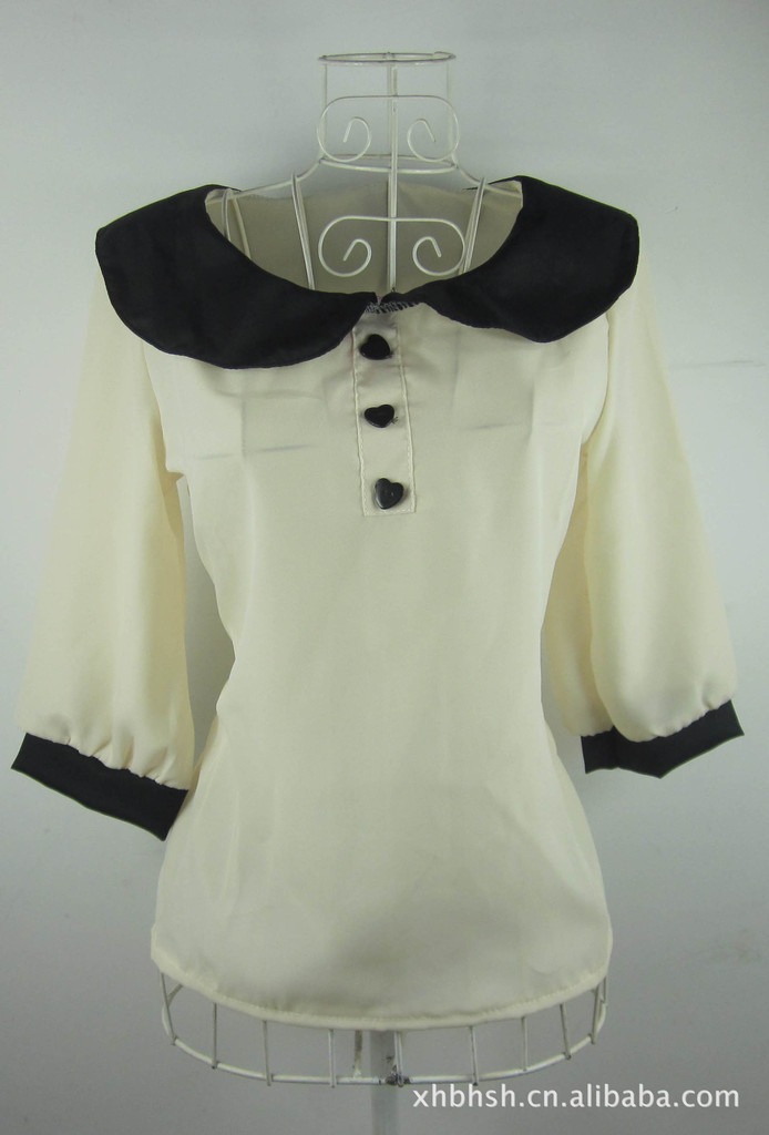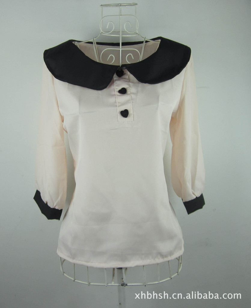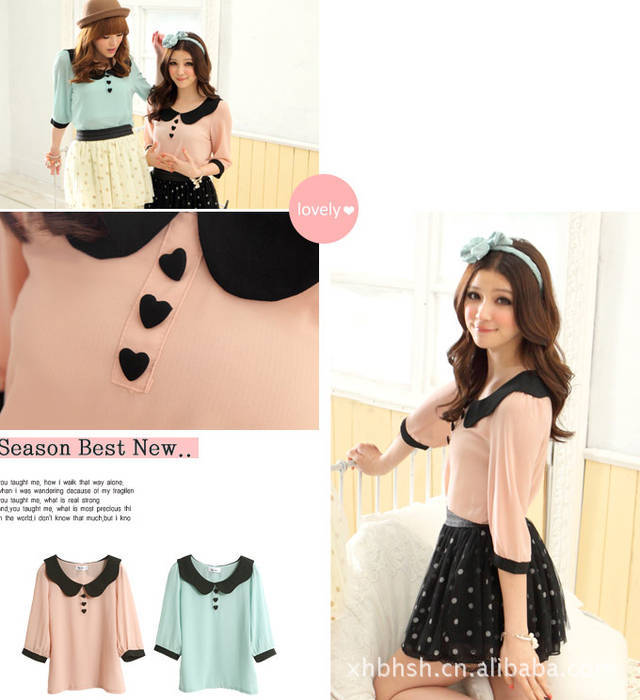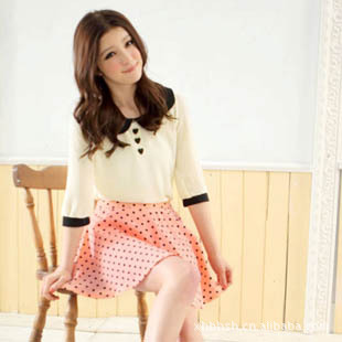 韩版女装2012新款气质甜美爱心扣圆领纱质中袖上衣