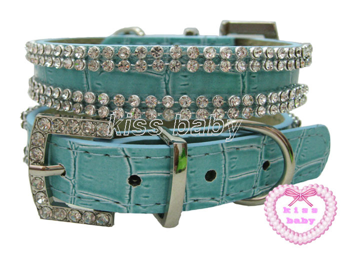 产品名称:欧美流行 鳄鱼纹PU皮 钻猫咪项圈 猫日用品 5色