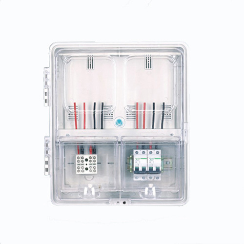 JCELE系列电表箱造型设计美观、线条流畅,箱盖透明清晰,箱内表位、电器元器件位置布局合理,可任意安装各种型号的电器元器件,集抄采集线器等。箱盖采用三向挂钩推进连接箱体,在箱体盖电表位下中部设专用铅封螺丝装置,箱盖下部用铅封螺丝及挂锁与箱体固定互锁,只有电管人员专用铅封螺丝反手和钥匙才可开启。箱盖的全透明方便电管人员清晰读数抄表和及时可直接观察到箱内的各类异常现象。从而提前排除用电中的隐患,实现“安全用电,预防为主”的管理目标。