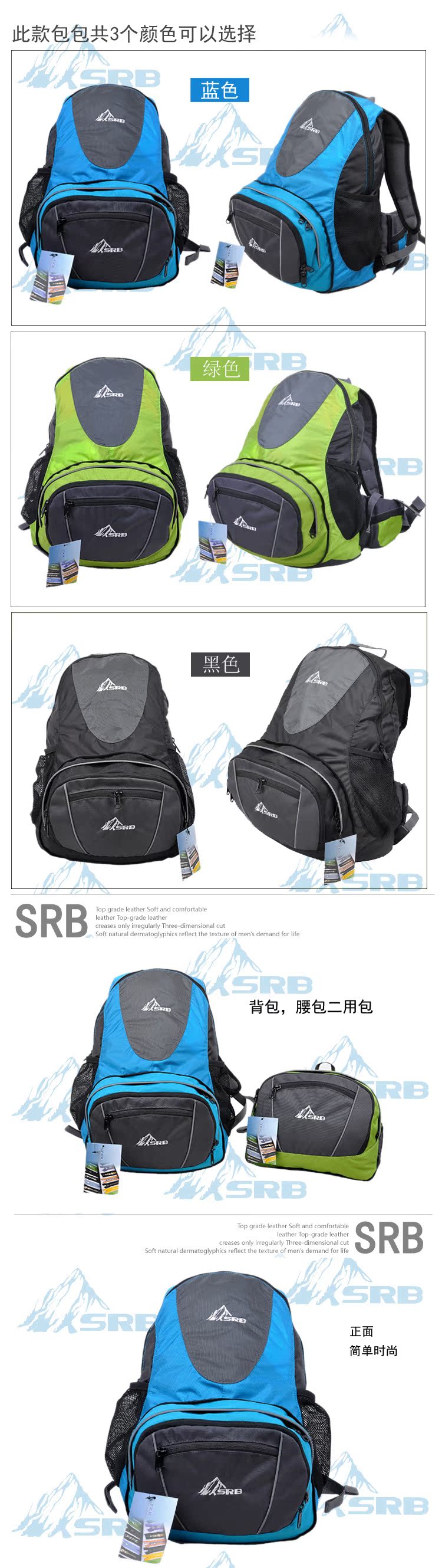 【产品名称】: 二合一双用腰包/背包 多功能腰包 双肩包 2011年最新款腰包