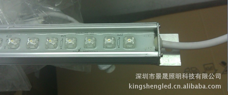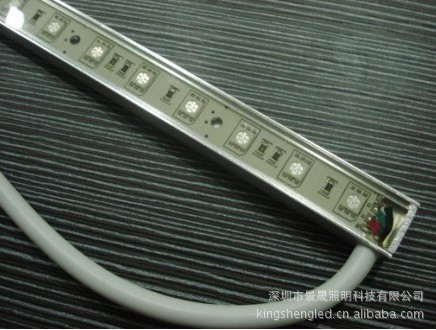 60灯贴片5050RGB铝硬光条:产品两端各引出一根带公母插头的防水电源线,导线线径是0.5平方毫米。接线时公母对接即可。与控制器接线时,线的颜色即是LED芯片的颜色,相对应连接即可。