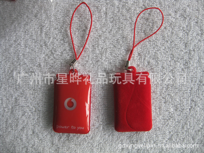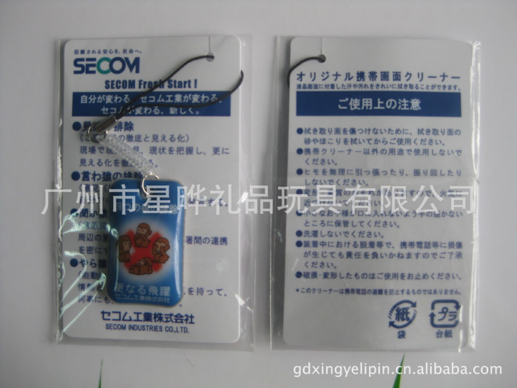 17)PVC手机擦:采用正面PVC四色彩色印刷+中间海绵+背面植绒布制作而成。