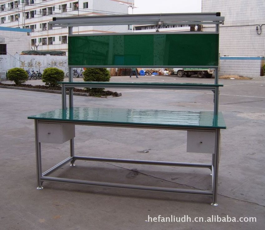 上图为防静电工作台,材质为铝型材,也可用不锈钢材料制作。