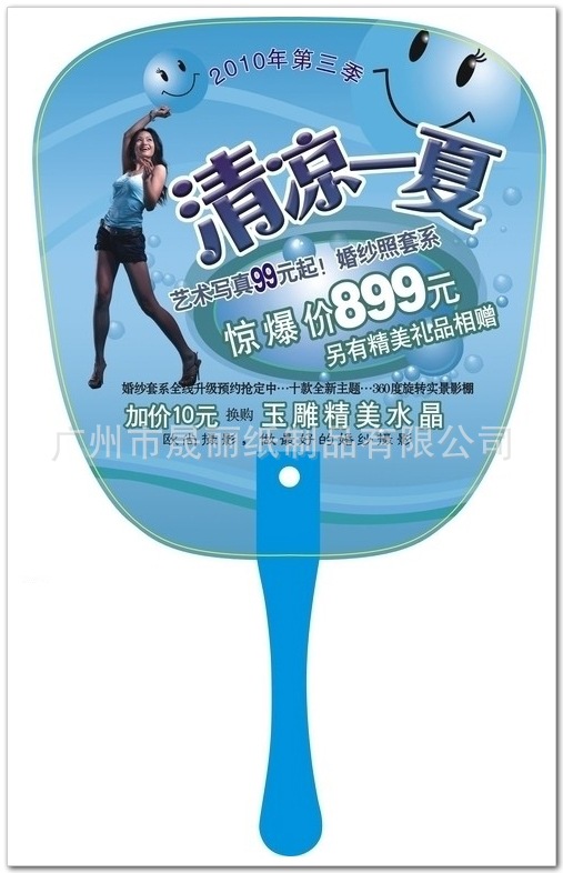 扇子是夏天人们纳凉降温避暑驱赶蚊蝇的日常用品,你可知道扇子还有其它功能吗?其实:可以把企业的产品介绍;图案或广告语印制在扇子上,就形成了一个名副其实的广告扇了。通过人们从早到晚的广泛接触,记忆深刻;形象绝佳,是各大中小企业提升企业品牌知名度的好方法。特别是在朋友相互串门,小聚聊天的片刻,扇子到哪,宣传就到哪,是室内外既经济又实惠的流动广告。广告扇子价格便宜,经济实惠,宣传效果好。把广告扇赠送给消费者,企业的品牌就可以达到长期的宣传目的,收到意想不到的效果。