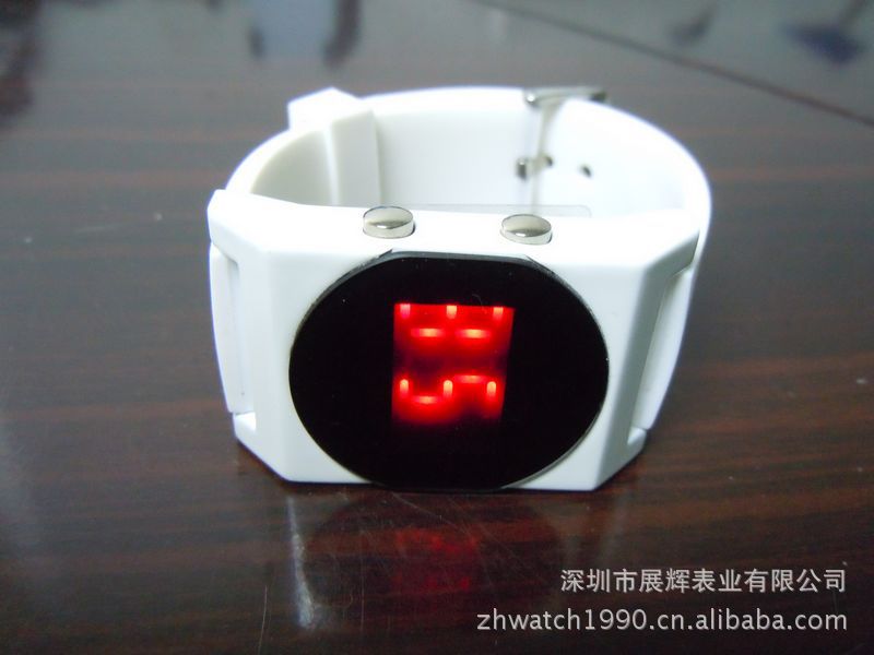 热销白色带子高档硅胶手表 红光圆形led手表批发