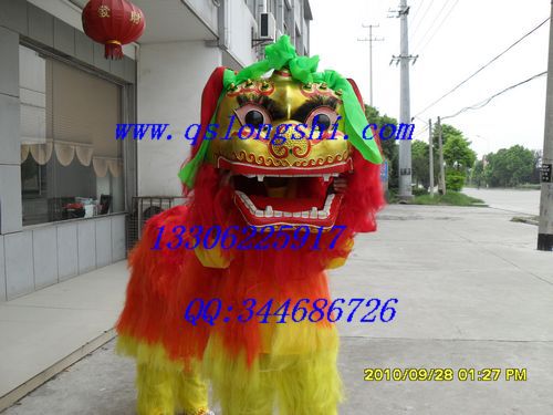 专业厂家生产龙狮 舞龙舞狮(龙灯/北狮/醒狮):米黄纯羊毛南狮