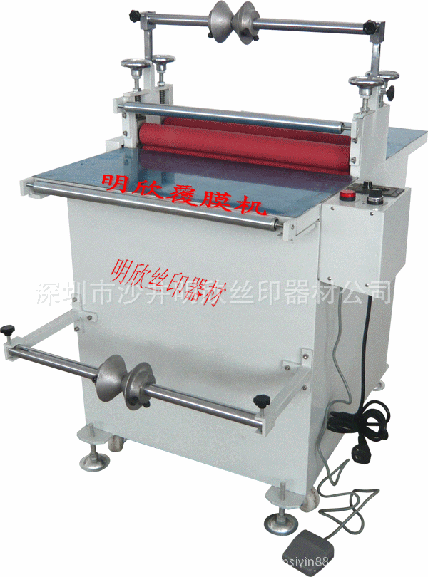 该机主要用于一般纸张,PVC胶片。等平面产品的普通覆膜,不带加热,覆膜宽度450MM,电源:220V,包胶长度:500MM,重量:55KG,覆膜速度:0-10M/M,全机功率40W,另外还可根据要求定做。可双面覆膜。