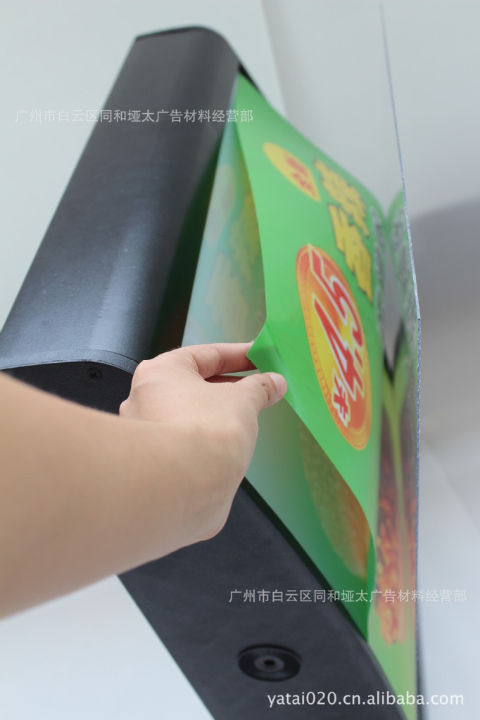 以上图示为宝贝侧面展示面板夹画方法。画面放置于两层有机片中间,撕云有机片保护膜,卡好即可。操作简单,方便快捷。