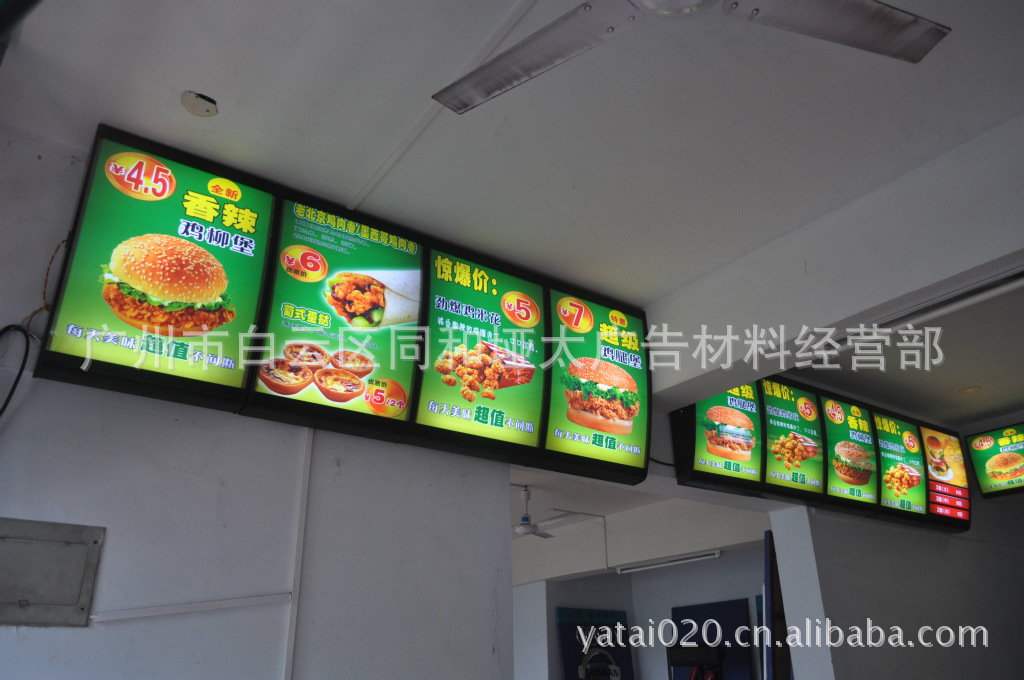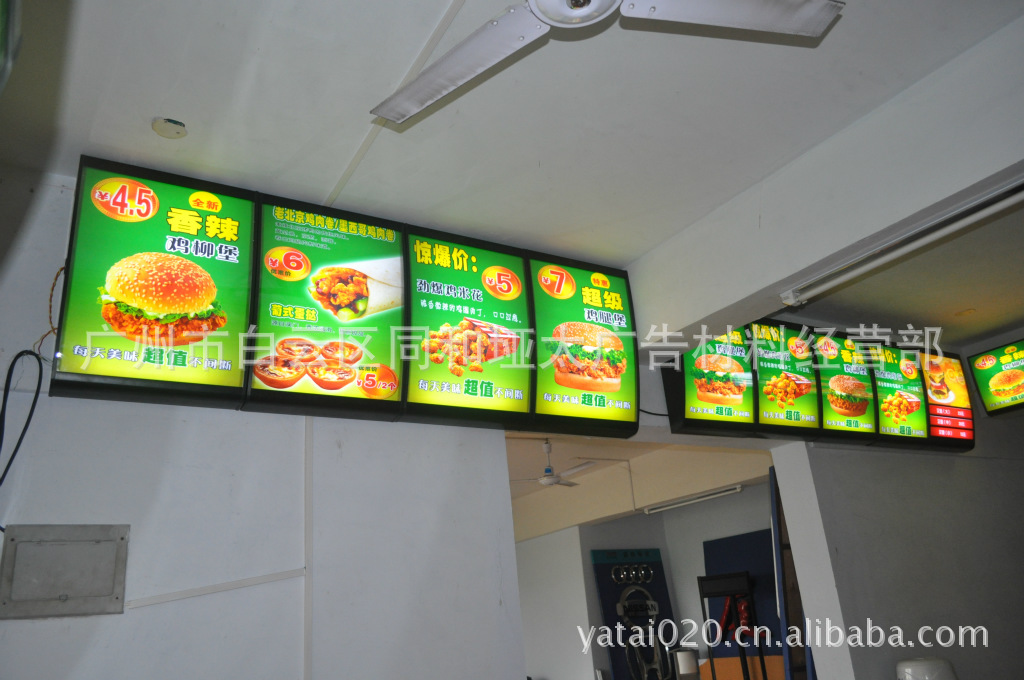 以上案例为单面餐饮系列灯箱餐饮店汉堡系列菜牌实拍。
