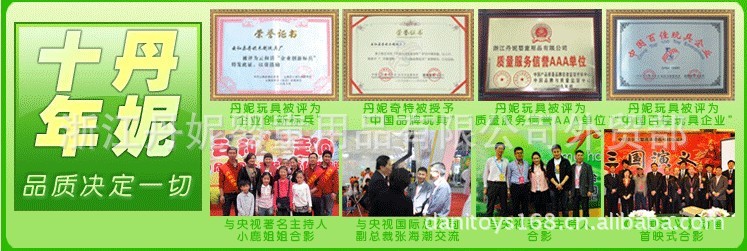 感谢您对丹妮玩具的关注!丹妮玩具自创办以来已有十余年,一直坚持自主研发、环保安全、早教益智、奉献社会的原则,至今丹妮发展迅速,硕果累累,现已茁壮成长起来。丹妮品牌以早教、益智、安全、环保、创新为理念,不断推陈出新,上市产品受到广大消费者和经销商的欢迎和青睐。为答谢广大消费者和经销商长期以来的支持,我们始终坚持以最优的品质换您最低的价格,最大程度让利给大家(当然,我们拒绝和三无产品作比较,没有可比性)。