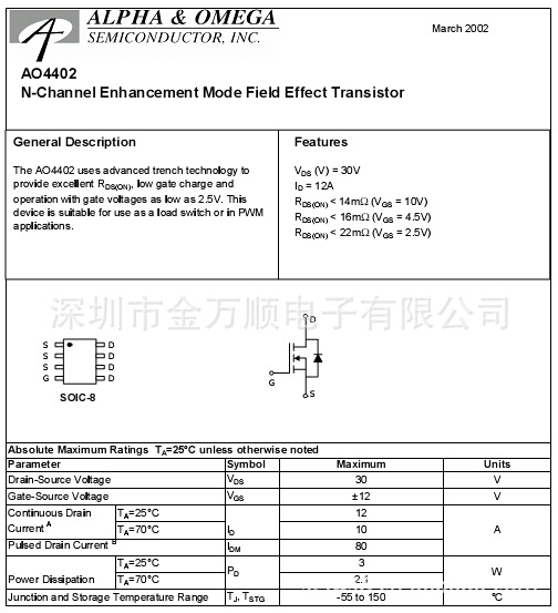 AO4402L 代理AOS美国万代MOS场效应管,原装进口大量现货