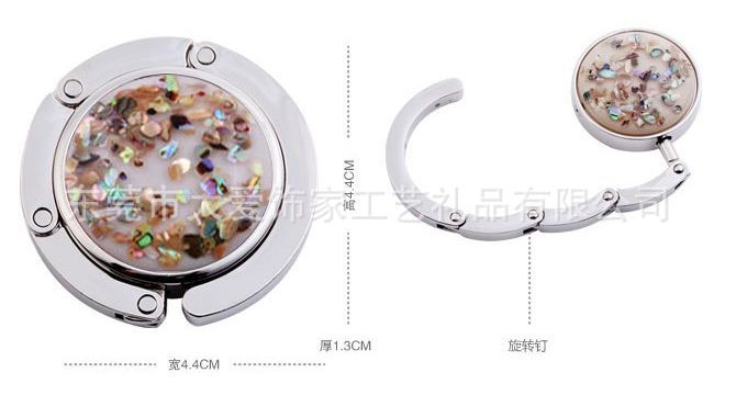 挂包钩是一种新颖的产品,目前在国内使用还不是很广泛,主要流行于欧美日韩国。其主体是由锌合金材料制成,不生锈,底部有黑色防滑垫,确保挂包的时候很牢固,表面可用各种花纹、水晶、钻等装饰,也有许多公司印上自己的logo作为礼品送人。可折叠,不占空间,折叠后直径仅4.5cm,很方便收到包包里。