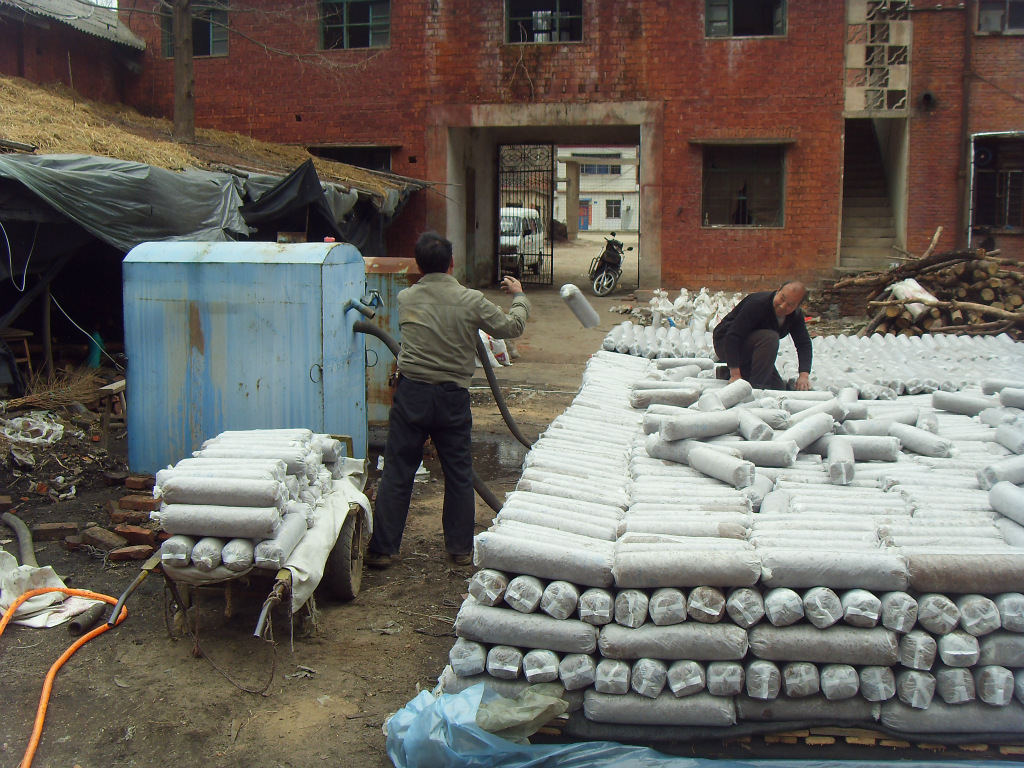 本产品是我厂根据食用菌生产的实际情况而研制生产的菌袋灭菌专用锅炉。该锅炉的主要特点是: 1、广泛用于食用菌料袋灭菌,香菇熏蒸,菌种物料杀菌消毒熏蒸等。 2、任何可以燃烧的物品都可以作为燃料。 3、一次性可蒸5000-8000袋。 4、热效率高,节能,产汽快,点火五分钟可产汽。 5、加厚钢板,内壁钢板3mm厚,外壁钢板2mm厚,能用5年以上。 6、出汽口温度可达100℃-120℃ 7、大小型号齐全。 8、节能好:以灭菌2000袋木耳菌袋为例,只需150kg煤或600kg干柴 9、移动方便:锅炉体积小,重量轻,可以轻松移动使用,无需固定(可多家合用)。 10、生产成本低:使用本锅炉不需要建造其它附属设施。 11、使用安全,因为是常压,所以无需专门司炉工操作和培训,不用考虑炉压问题。 12、质优价廉,在同类型锅炉当中价格最低。常压灭菌堆垛包装灭菌方法 一、选择一背风朝阳的平地面(北方地区冬季可置于院内或室内),在地面上铺一层塑料薄膜,其作用是隔气、隔水、防止冷凝水浸湿地面而倒垛二、在铺地薄膜上面根据菌垛大小摆上几行二层砖,每块砖要间隔摆放,留出空隙,用于串汽。三、在砖行上面摆放木杠或窄木板,要注意平整。四、在木杠或窄木板上面,可以铺一层透汽性好的网状物以防扎袋。但坚决禁止铺可能影响上汽的其它物品。五、在上面摆放菌袋,把菌袋尽可能码高,不要使菌垛过长过宽。六、菌垛码好后,用双层农膜自上向下,包裹好,双层农膜要能伸延到下边的薄膜上。七、根据菌垛顶部面积大小,用麻袋或其他较厚的物品铺盖垛顶,做保温层用。八、最后用方格花塑料雨布从垛顶自上向下,包裹到底边,然后用绳索在菌垛四周捆三道,再从顶部向下捆二道,菌垛就算包好了。九、把常压灭菌锅炉放到距菌垛一米左右的地方,在锅炉底部垫两层砖,其意是抬高锅炉,利于通风和清除炉渣。然后把蒸汽导管接好,一头插进菌垛底部(木杠以下),不要插进去太深,以20cm-30 cm为宜。要注意使导汽管口平伸,不要向上跷或向下跷。十、锅炉点火后,待菌垛内的冷汽排净,下部开始冒热汽后,可以把菌垛底边四周的农膜及塑料雨布轻压,并且留出排水口,如果码垛的地表不平,一定要使排水口留在垛底的最底处。十一、锅炉点火后要尽量保持旺火,不要使火忽大忽小。锅炉水位要稳在水位线的中下部。下水开关开到能使炉内水汽平衡为宜,不要开一下,关一下。十二、待垛内下部温度达到100℃(在菌垛下部第四层处量)后,把垛底边压实,出水口一直保留。锅炉再烧8-10个小时,即达到灭菌的目的。十三、垛内温度达到100℃的时间没有定数,根据菌袋的多少而言,以2000袋为例,冬季约3-4小时,其它时间约2.5-3.5小时。