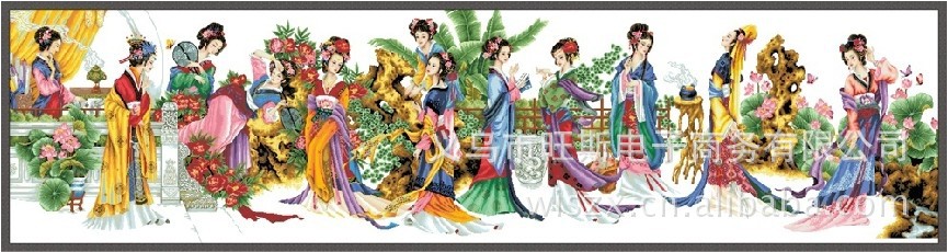 商品名称: 十二金钗新版 精准印布十字绣套件规格:1496*380(格子数)中格:361X103CM(绣布尺寸)