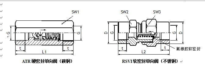 ·密封:1)ATR单向阀的阀芯同阀座之间为金属对金属的硬密封;2)RSVI单向阀的阀芯上有氟橡胶软密封(见上图)