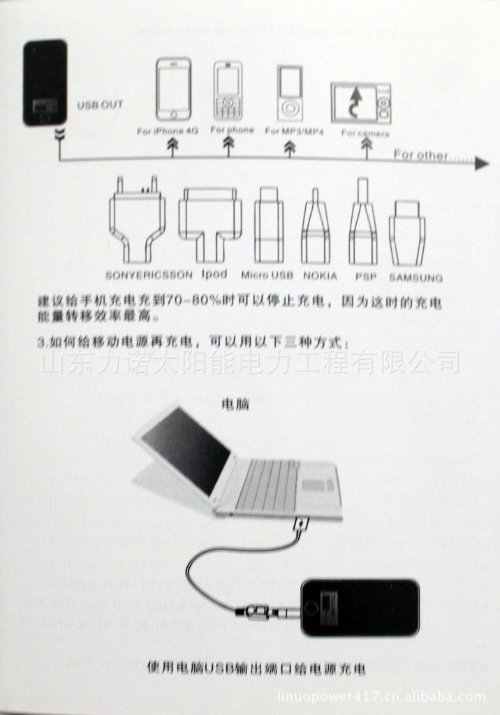 本品可以把太阳能转化成电能,为手机,MP3,数码相机,录像机,GPS等充电;