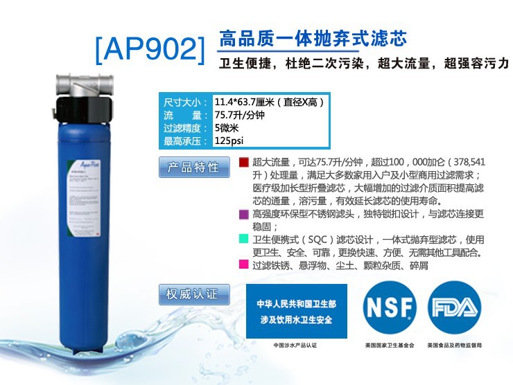 ■ 滤芯(AP910R)具有NSF42材料安全性及结构认证