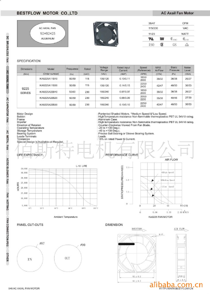 轴承:轴承类型分为 含油轴承(风扇寿命30000小时),双滚珠轴承(风扇寿命50000小时);