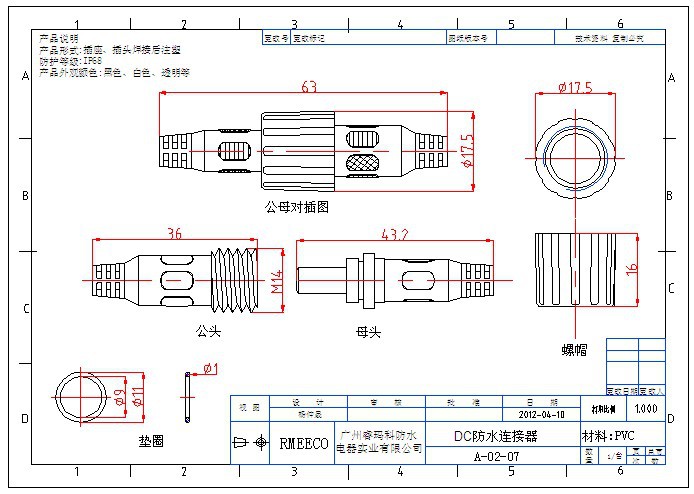- 线材材质:PVC、橡胶,硅胶其他,根据客户要求定,常规为国标RVV护套线,也欢迎客户来线,由我司加工注塑上防水公母接头
