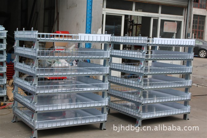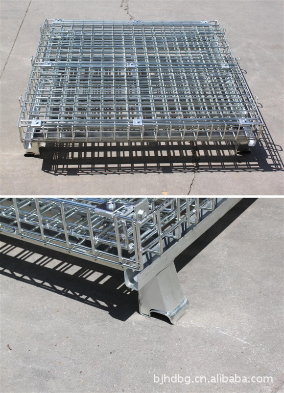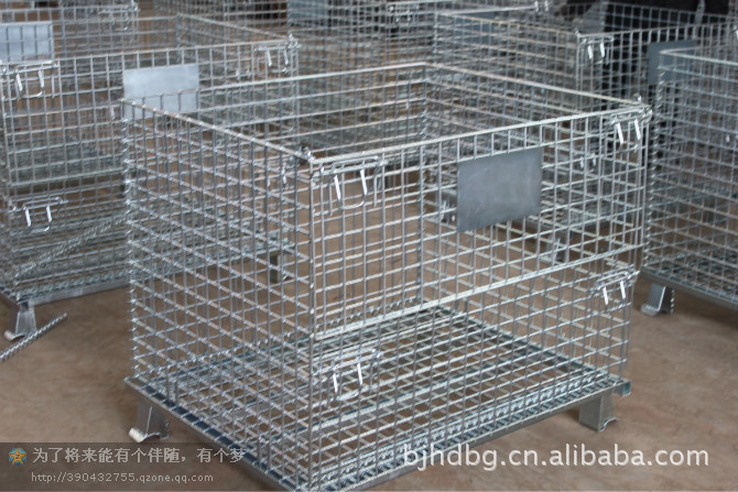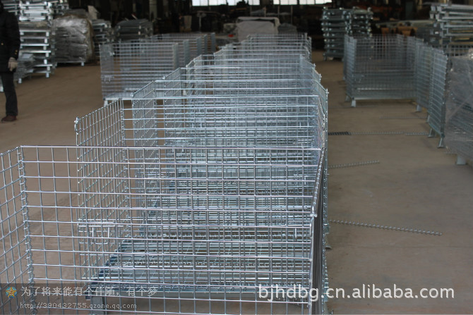 仓储笼(仓库笼)又称储物笼;采用强力钢丝焊接而成,底部以U形焊接补强,强度高、装载能力大、可叠四层、实现仓储的立体化,不同型号、不同规格的折叠式仓储笼(仓库笼)承重为0.8T~2.0T;折叠式结构,装载、周转、存放较为方便。存放规整,易于定置、单元化存储方便管理。仓库笼不使用时可折叠存放,节省空间;折叠式仓储笼(仓库笼)表面镀锌,美观抗氧化,可长期使用。卫生免疫、周转、存放和回收均不污染环境;折叠式仓储笼(仓库笼)适于用叉车、吊车、行车、升降机、台车、液压托盘车等装卸、搬运、堆高,省时省力。折叠式仓储笼(仓库笼)门可打开,不用翻仓即可取用所需之物料