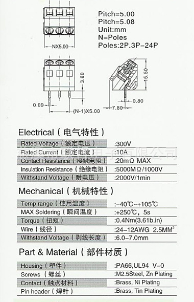 规格:螺钉式PCB接线端子