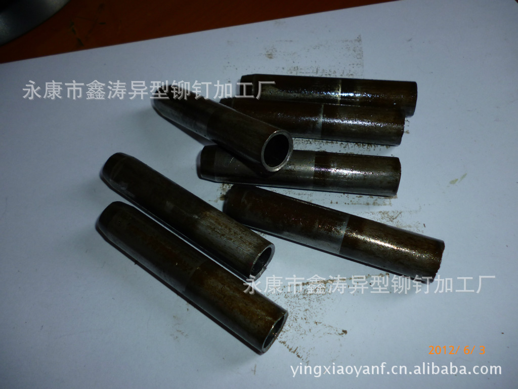 鑫涛异型铆钉厂位于中国五金之都浙江省永康市,成立于2001年,引进先进的台湾生产设备、技术力量雄厚,专业生产各种铜、铝、铁及不锈钢半空心铆钉、实心铆钉及异型铆钉,全空心起眼铆钉、台阶铆钉、子母钉、对敲铆钉、防盗门铰链上各种高难度工艺铆钉,非标件及标准件铆钉,冲压配件等系列。产品广泛用于文具、夹子类、童车、自行车配件、沙滩椅、玩具、家用梯,防盗们铰链上,溜冰鞋及配件、箱包、餐具(锅类)、家居用品、门窗五金、家具配件、医疗器械、园艺工具、汽摩配件、电子电器产品、运动器材,机电产品等行业!可以多样化表面处理,如镍、铬、青铜、锌、黑锌等电镀及硬膜发黑等。本厂生产经验丰富,工艺精良。生产品种居多、规格最齐全的铆钉生产企业。 我厂本着“信用、重质、求实、创新”之服务经营宗旨,为客商提供完善的设计、开发、生产、咨询、销售及技术培训等全方位服务。竭诚欢迎新老客户光临指导,互惠互利,精诚合作! |