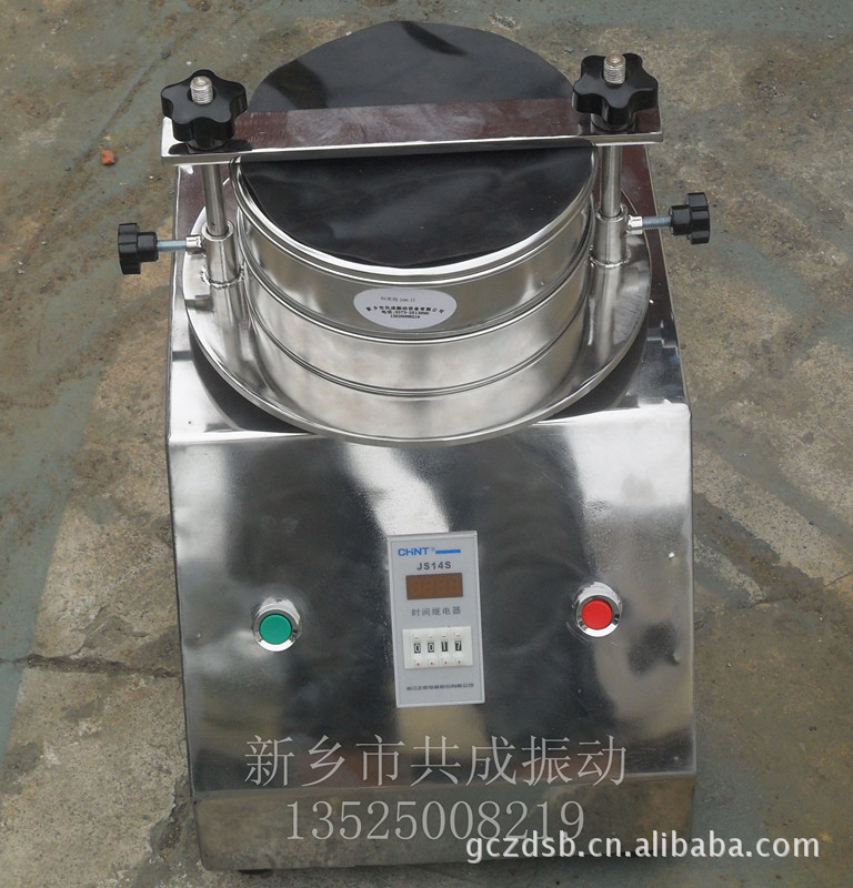 四、把定时器开关放在相应需要的位置,(注意阅读定时器说明,不同的设定所设定时间不一样)然后打开电源开关,检验筛即开始工作。