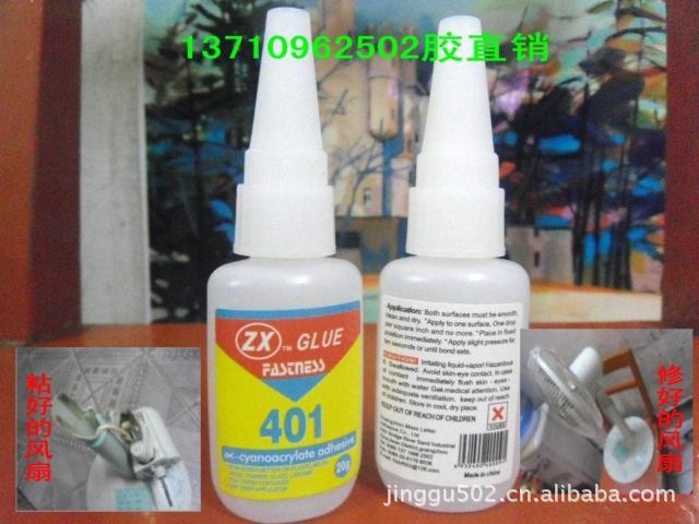 401瞬间胶,常用于饰品,水钻,发束的粘接颜色:透明最大填充间隙:0.05MM类型:表面不敏感,乙基粘度MPAS:110剪切强度 MPA:22温度范围: -54℃ 至 80℃固化速度(初固/全固): 15秒/24小时密度: 1.05型 号:401 瞬间 粘贴剂-液体型用途:金属,塑胶,橡皮,树木,皮革,陶瓷,木板等!