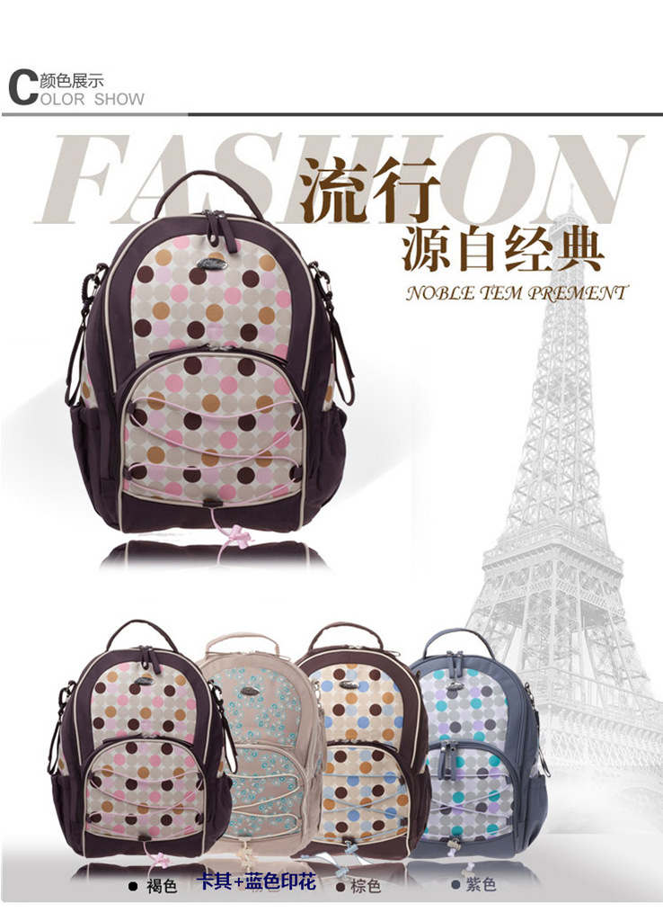 妈咪包的外观与普通包一样,时尚、实用。包的结构合理,内部有很多大小不一的分隔袋、拉链袋、敞口袋等,将宝宝的东西和妈妈的东西以及大小物件有条不紊地分开来,找取方便,更能保证宝宝用品的安全、卫生。
