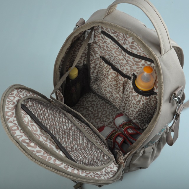 人性化的专业设计,分前后 袋、侧袋、袋内还设有大小不同隔袋,可有条理地放置各种婴儿用品,更可将没用过的和用过的物品科学的分开收纳,取放方便快捷。有的还额外配有奶瓶保温袋、独立的软垫供宝宝休息和更换尿片时使用等。总之,就是需带的物品要具体而微地在包中恰当的安放。