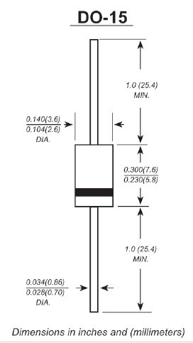 IN5398,直插式整流二级管,1.5A系列,800V, 封装形式DO-15