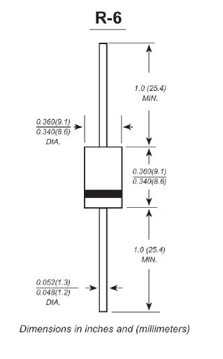 10A1,直插式整流二级管,10A系列,50V,封装形式R-6.