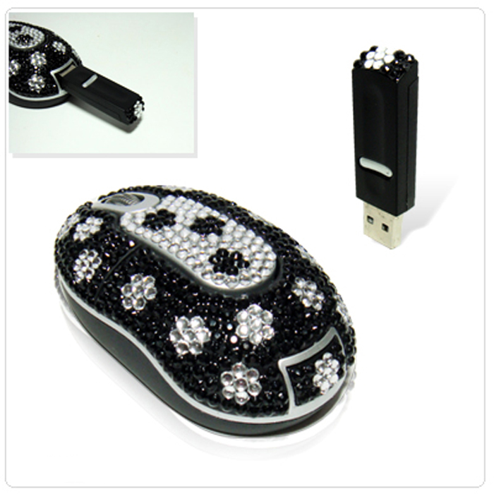 功能特点:精美可爱的迷你无线光电鼠标,表面全部手工镶钻处理;