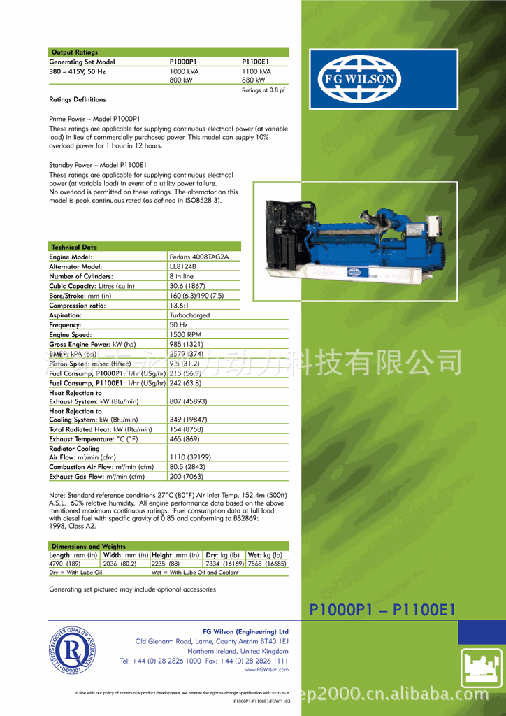 机组型号:P1100E1(劳斯莱斯Perkins) |