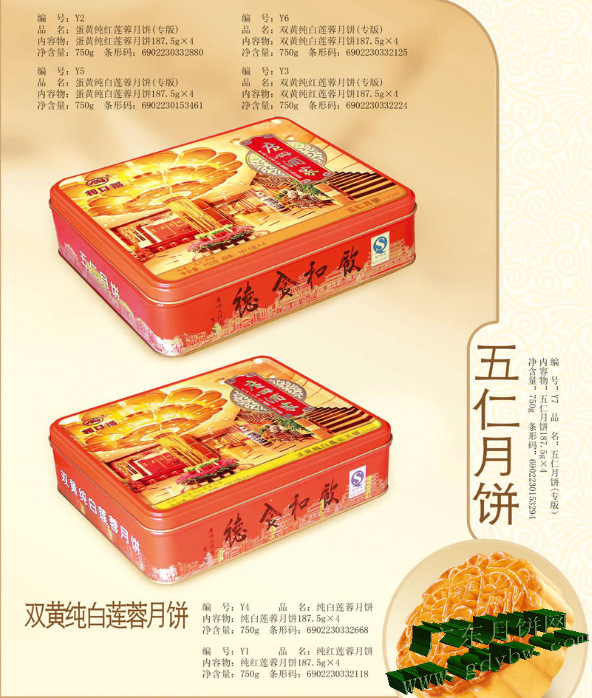 说 明:彩色豪华铁盒包装;每个月饼独立包装,烫金托盘;配套装刀签及专用豪华手挽袋