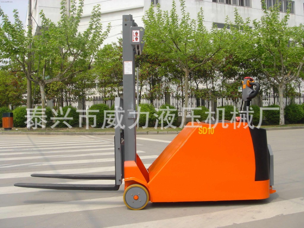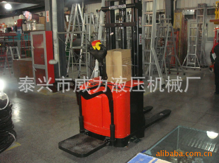 站驾式叉车又称配重式叉车。根据操作方式,可以分为步行平衡重式叉车和站架式平衡重式叉车。本公司步行平衡重式叉车额定载重1吨-1.2吨,提升高度1.6米-3.3米。电磁制动方式。控制系统:美国CURTIS 直流系统 /CurTis DC。适用于石油、化工、制药、轻纺、军工及港口、铁路、货场、仓库含有爆炸性混合物场所,进行装卸、堆码、搬运作业。双面、单面托盘均可使用。步行、站架平衡重式叉车是今后用户首选产品,其性能不同与其他叉车系列。平衡重式叉车可代替内燃机叉车,双面单面托盘均可使用,锻造货叉,门架前倾3°,后倾4°,离地距离较高,操作方便,门架可自由提升。左右侧移,是仓储、物流首选产品。本步行平衡重式叉车采用原装德国瑞玛手柄总成,无级调速。原装美国科蒂斯电控总成,无级调速。原装意大利进口驱动总成,强劲有力。并配大容量牵引组合型电池。充一次电能连续工作6小时以上。智能无人值守型充电机,保证了电池的使用寿命。无噪音,无污染,性能可靠。是您搬运、堆高理想工具。