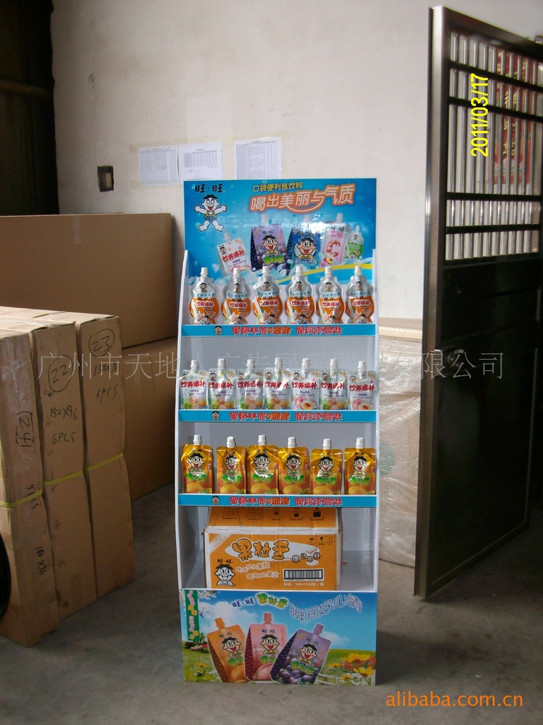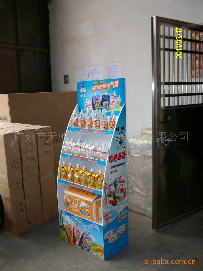 材质:20*20方管喷涂黄色,三层线栏喷涂黄色,承重力强,单层可放花生油,牛奶,饮料等等,高清喷绘背胶过膜裱PVC广告牌;做工精致,焊接位平滑,组装简易,陈列稳定