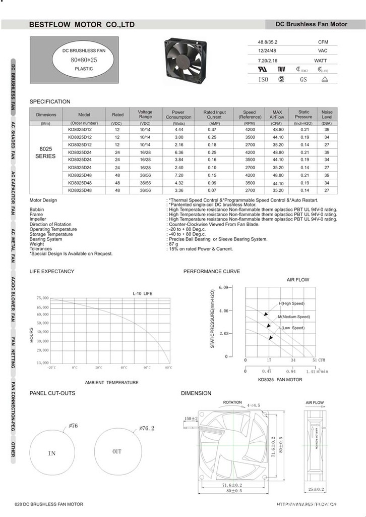 外框材质:黑色不可燃防火PBT工程塑胶一次注塑成型,并做动平衡校正;